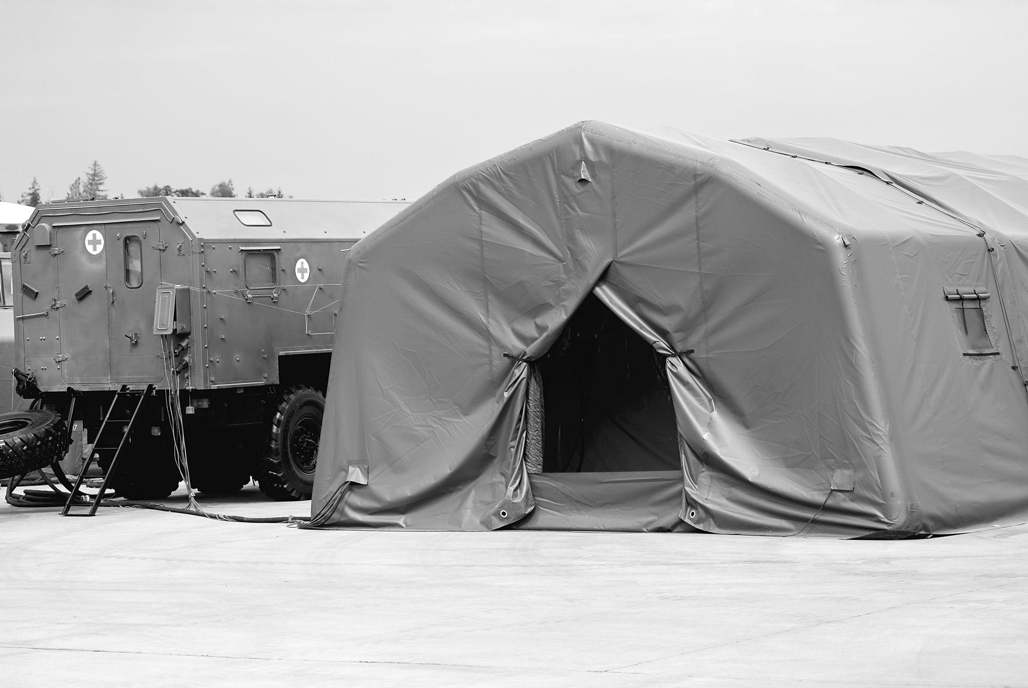 Im Feldeinsatz oder bei Übungen bieten unsere Zeltplachen für Sanitätszelte zuverlässigen Schutz bei jeder Wetterlage.